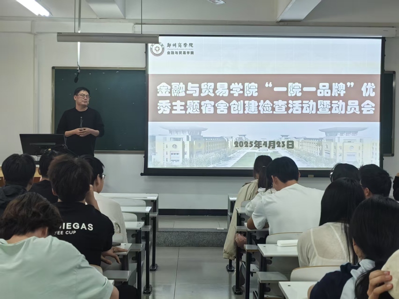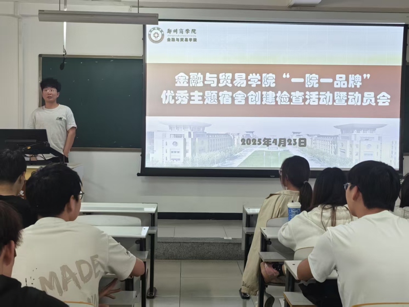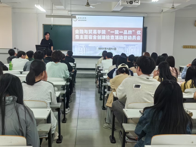 为保证学生宿舍安全卫生条件,提升学生宿舍环境品质建设的水准,打造具有特色文化的学生宿舍,4月23日晚,金贸学院于1号楼201教室开展“一院一品牌”优秀主题宿舍创建检查活动暨动员会。金贸学院团委书记兼行政秘书吴森、辅导员邢璐以及2023级全体宿舍长共同参与此次会议。