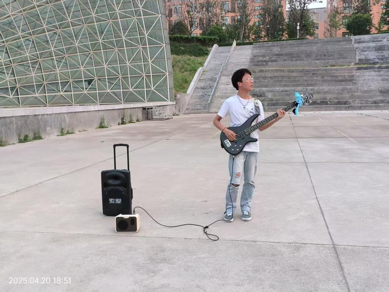 活动伊始,同学们自发演唱了《慢慢》《有点甜》《背对背拥抱》等经典歌曲,为现场营造了轻松愉快的氛围,随后王晨阳同学弹唱了《i walk this earth all by myself》《再见杰克》等摇滚乐,以独特的风格传递出当代大学生的青春热血。