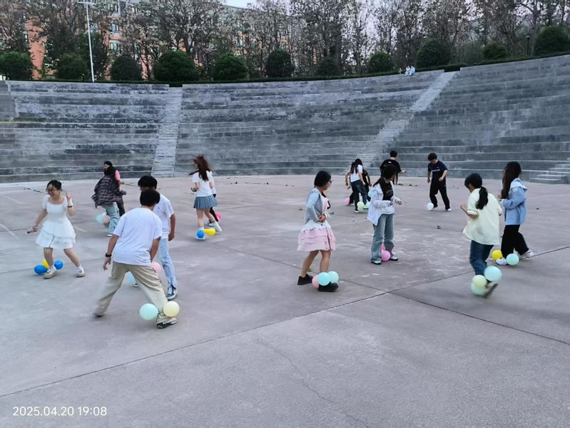 演唱结束后,进入游戏阶段,在气球大战中同学们既要保护自己的气球,又要“偷袭”对手,随着倒计时结束,组内气球剩余最多者胜出,赢得奖品,在此起彼伏的气球爆破声和欢笑声中,让学习和工作的压力都一扫而空。
