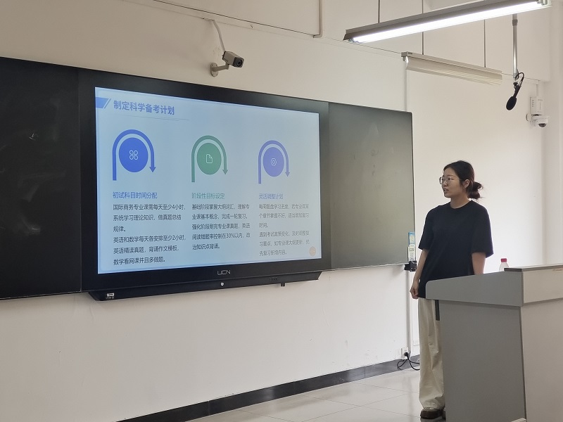 为激发学生考研热情,明确备考方向,4月27日,我院跨境专业于1号楼201教室举办2025届考研经验分享会,会议特邀2025届考研优秀学子邢林燕、王玉菲、聂炜和马骏进行经验分享,跨境教研室主任李国艳、2025届全体考研上岸毕业生及2026届考研学生参加会议,会议由李国艳老师主持。