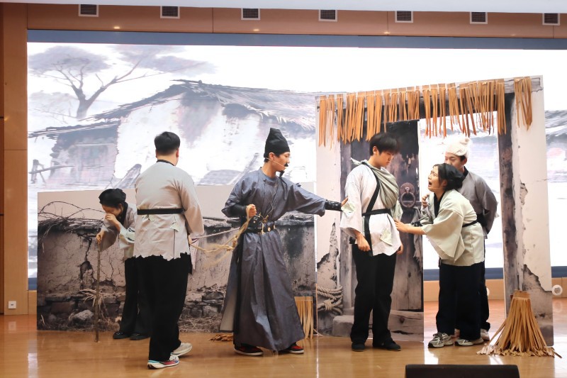 舞台上,光影变幻与角色演绎相得益彰,选手们用多元艺术形式搭建起古今对话的桥梁,让千年前的历史悲歌跨越时空,引发全场观众的强烈共鸣,淋漓尽致地展现出《石壕吏》的深邃诗词意境。