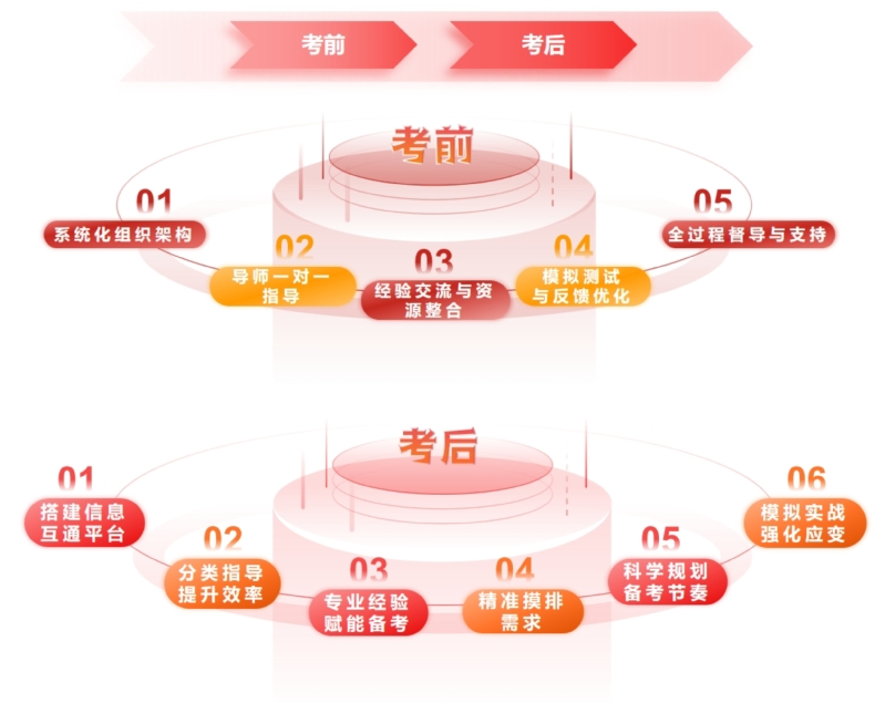 学院依托分层分类教学理念,构建了考研帮扶“考前考后5+6直通车”模式(见图6),为考研学子打造了360°全程指导绿色通道,独创的“ABCD四类复试指导法”(见图7),成效显著,最终实现复试通过率91.2%的突破。学院连续三年举办“考研对话会”累计覆盖2000余人次,形成“届届相传、生生不息”的奋进生态。正如学院梁院长所言:“我们不仅要送学生上岸,更要让追求卓越的精神在学院扎根!”