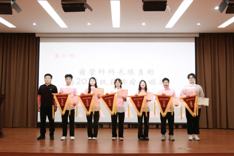 会上,首先由优秀宿舍的宿舍长代表依次上台发言并登台领奖。