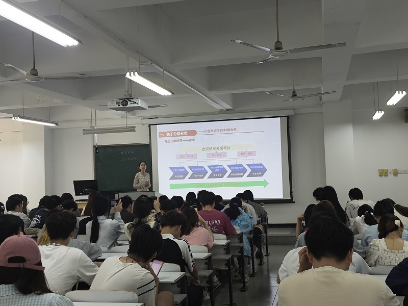 为精准对接学生多元化发展需求,优化教学资源配置,提升学生考研升学率与就业核心竞争力,5月28日,我院投资学专业召开2023级分层分类教学宣讲会。投资教研室主任朱梦娣老师及2023级投资学专业全体学生参加会议,宣讲会由朱梦娣老师主讲。