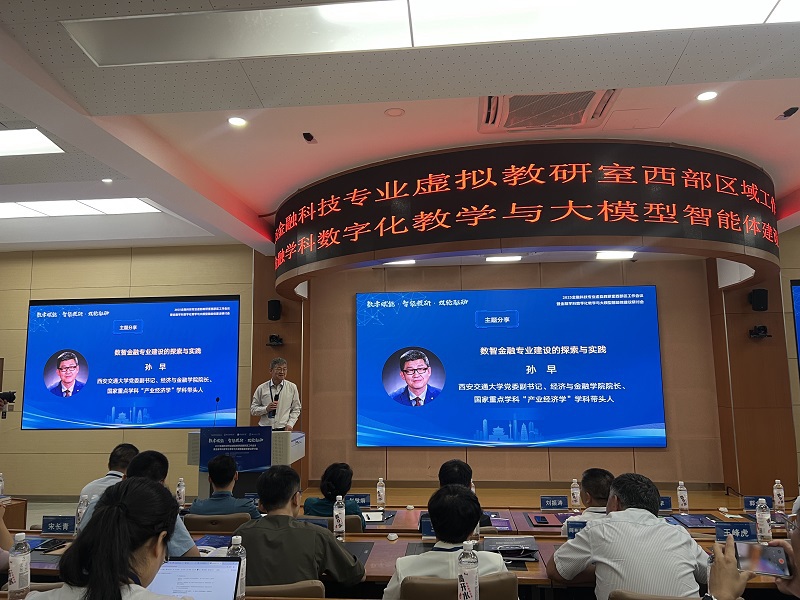 会上,西安外国语大学党委书记刘振涛强调,金融科技专业需紧扣“数智化”转型趋势,深化校企协同与跨区域合作。中央财经大学副校长李建军以“数智金融专业建设的探索与实践”为题,深入剖析了当前传统金融建设的瓶颈,并提出了未来数智化金融的发展方向。西安交通大学党委副书记孙早结合国家重点学科建设成果,提出了金融科技人才培养的跨学科路径。西安财经大学校长赵敏娟则立足整体经济环境,阐述了未来人工智能驱动金融学科的必要性。中国高校金融教育金课联盟秘书长郭金录展示了智能技术赋能教学的实践成果,西北农林科技大学经济管理学院院长石宝峰分享了学院在教书数字化转型方面的成功经验。其他学者也围绕实践教学创新、智能技术赋能课程建设等议题进行了深入分享,为金融科技专业建设提供了多元视角。