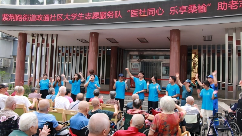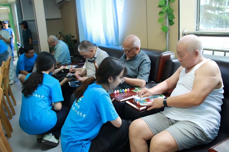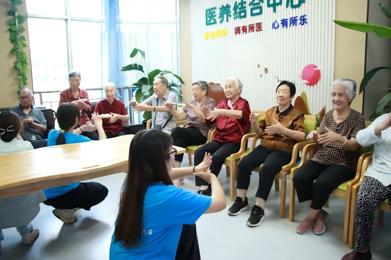 健康关怀板块,队员们带领老人做起“健脑手指操”,通过揉按穴位、关节屈伸等简单动作,帮助老人锻炼手部精细动作,促进身体机能协调。