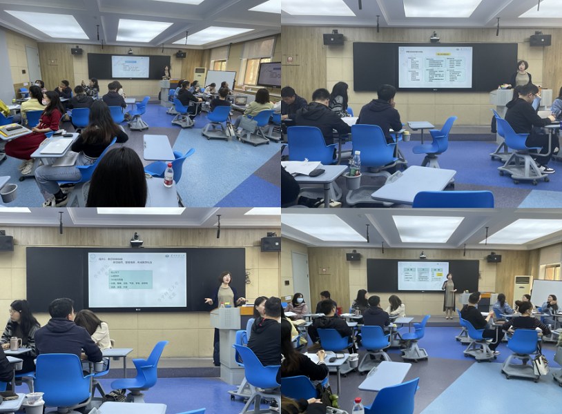本次工作坊分为教师基本教学技能提升、高校课堂教学方法的创新运用和实践操作三个模块。在模块一中宋荣教授分析了教师的教学基本技能在教学过程中的重要性,并从教态转换技能、教学语言技能、导入技能、板书技能、教学技能等十个方面详细阐述了提升教学基本技能的方法。模块二主要围绕课堂教学创新的方法,从实现课堂有效互动的技巧策略入手,紧扣教师课堂教学中导入、讲授、提问、研讨、活动设计、小结、课程思政要素挖掘等环节详细讲述了提升教师教学创新技能的理念和方式方法。在实践操作模块,宋教授将参训教师分为4个小组,针对课堂活动设计进行实践演练,参训教师积极参与其中,在宋教授的指导下,不断改进完善。工作坊结束后,宋教授就个别参训教师课件制作、教学方法等方面存在的问题和困惑进行了有针对性的解答。