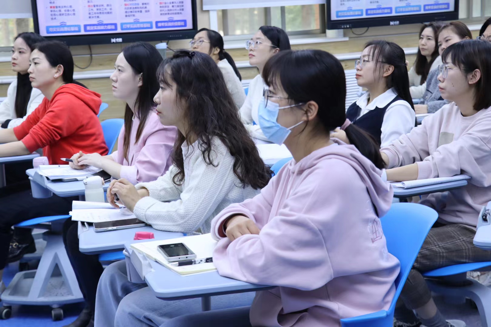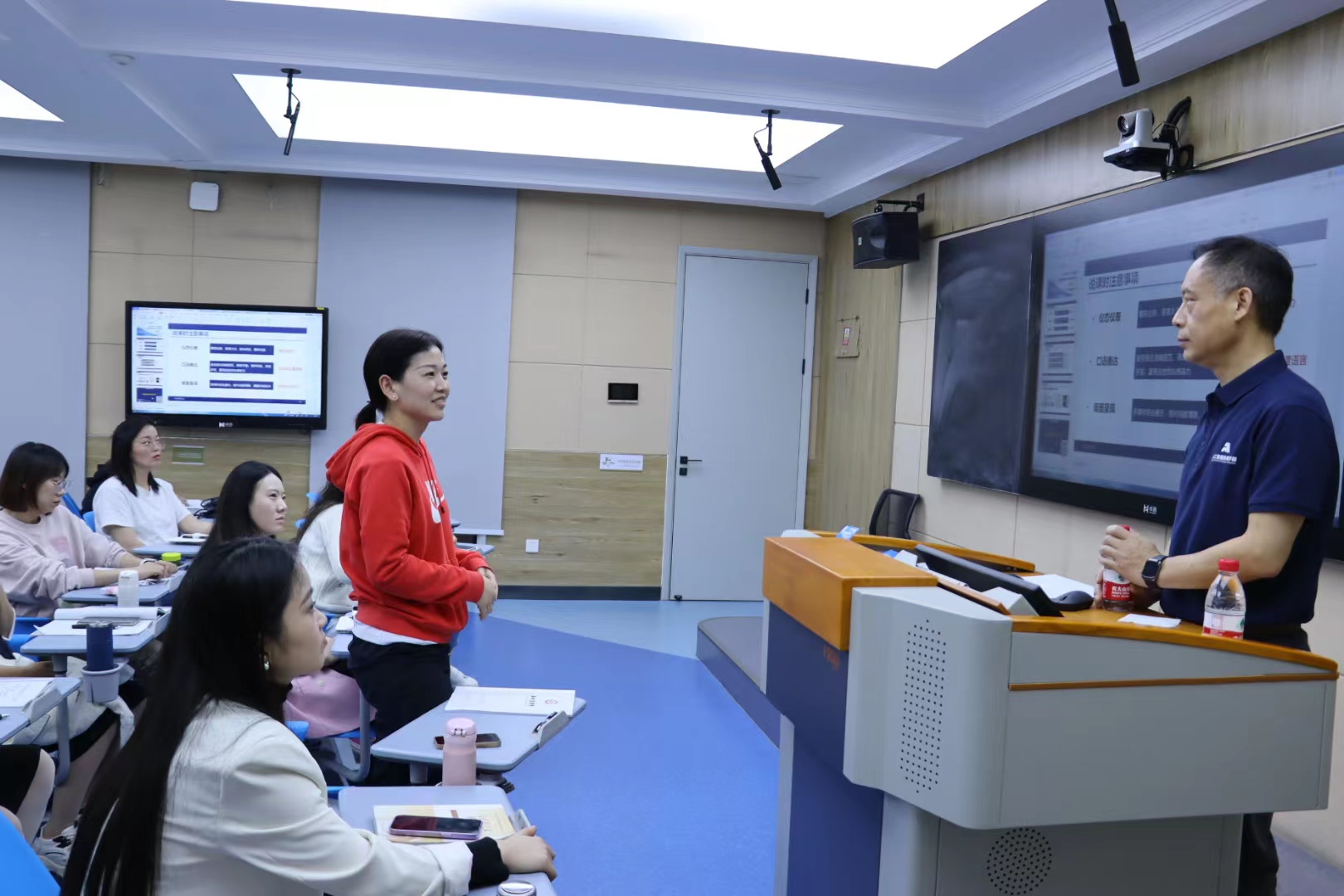 下午,杨教授针对教学痛点问题,以比赛实际案例为例,分析教师在教学设计过程中的诸多问题,延展我校教师课堂设计思路,优化反思课堂教学路径。在交流互动环节,杨教授现场解答了老师们平时课堂教学以及创新大赛准备中遇到的问题和困惑。