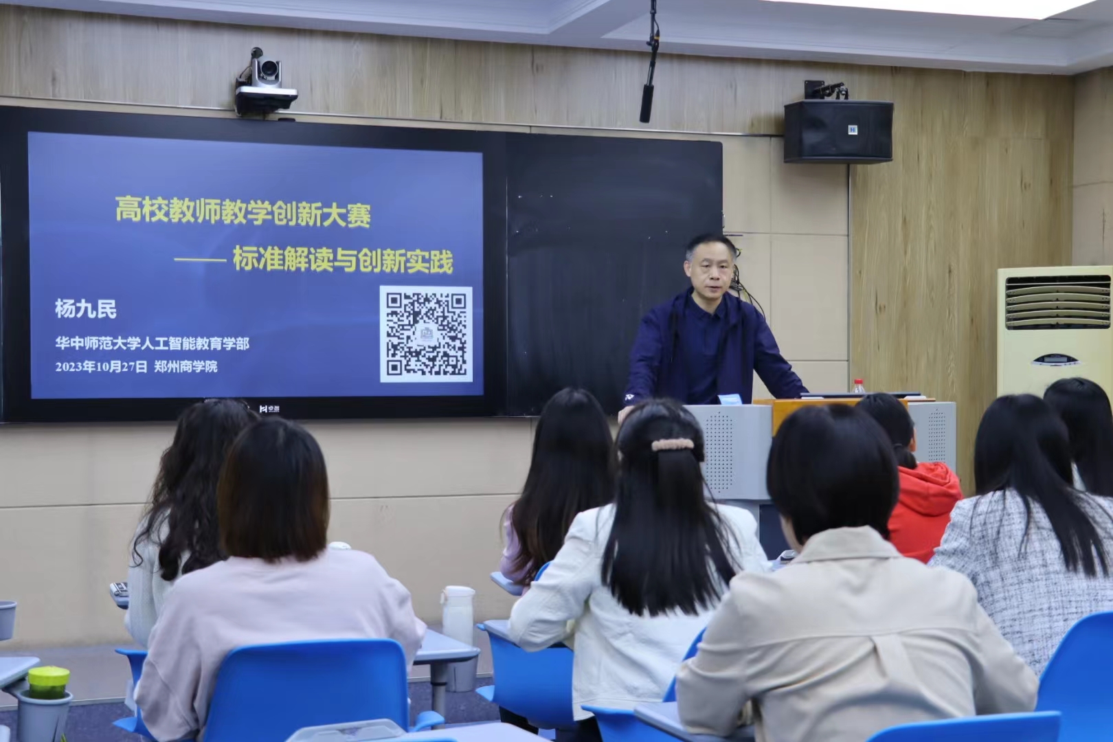 为加强教师队伍建设,全面提升我校教师教学设计活力和教学创新能力,深入推进课堂教学模式改革,寓教于赛,以赛促教。10月27日,教师发展中心特邀华中师范大学杨九民教授在外语楼104对我校教师开展为期一天的课堂教学创新大赛赛前培训。