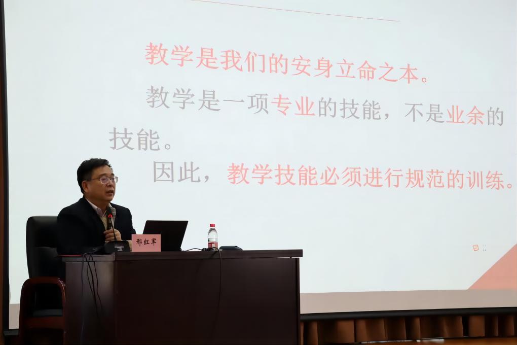 为夯实新入职教师基础教学知识和基本教学水平,助力教师站稳讲台,11月2日下午,教师发展中心特邀首都师范大学教授邢红军在图书馆五楼报告厅进行教师基本教学技能专题培训。会议由教师发展中心韩延延老师主持,各学院100余名无课青年教师参会学习。