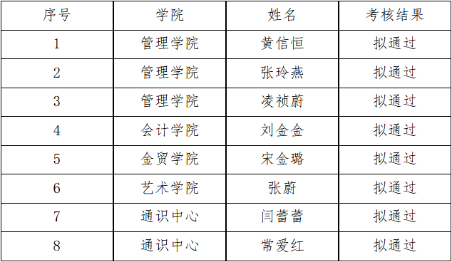 依据我校《青年骨干教师培养管理办法(试行)》(成字〔2018〕102号)要求,教师发展中心认真组织考核,经教务处、质评中心、人事处、科研处审核,校领导审议,现将考核结果进行公示。