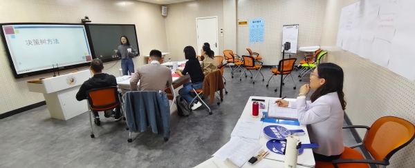 在为期四天的学习中,黄淮学院刘献丽主任和资深FDW引导员关英子老师精心设计研修环节,营造出轻松愉悦地学习氛围,鼓励学员积极挑战自我,打破固有教学定式,尝试在教学理论指导下采取有效的教学策略。在引导员的专业带领下,学员以BOPPPS教学模组为框架进行主题课学习,连续三轮分组微型教学演练,结合同伴回馈的方式,不断复习教学模组设计、不断拆解反思教学行为、不断尝试新的教学策略及教学技巧。在此过程中,我校FDW引导员郭峰老师参与了本次引导的全部教研过程及第一小组的学习过程,并完成了8轮教学引导演练。
