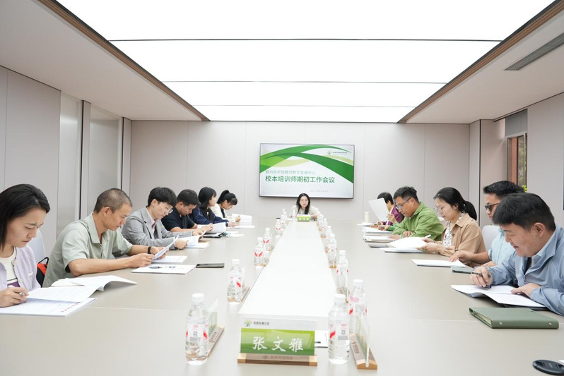 为进一步提升我校教师教学能力与专业发展水平,充分发挥校本培训师在教师队伍建设中的引领作用,确保新学期教师培训工作高效、有序开展,9月12日上午,教师教学发展中心开展了2025-2026学年第一学期校本培训师工作会议。会议由教师教学发展中心主任喻愔烁主持,全体校本培训师、助理培训师及中心工作人员参会。