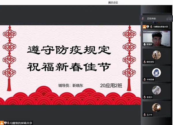 最后,辅导员们还为同学们送去了新春祝福,提醒大家向父母表达新春祝福和感谢。鼓励同学利用好假期,在奋斗和挑战中超越自己,迎接充满希望的一年。