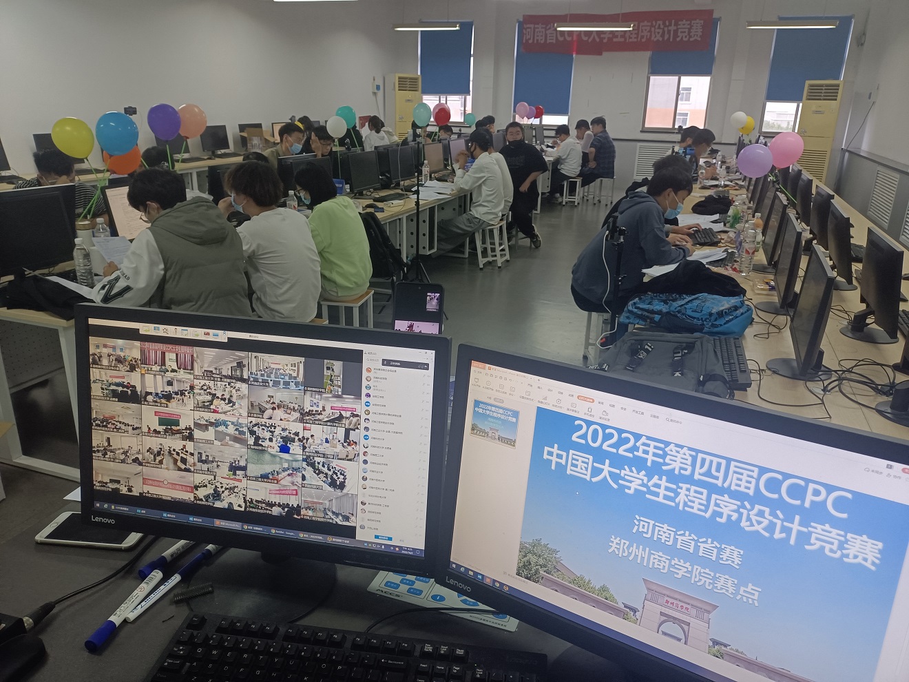 由于疫情的原因,本次比赛采用基于网络的分布式现场赛模式开展,所有参赛队员在各自学校集中参赛,线上提交评测。在CCPC中国大学生程序设计竞赛知名度和影响力不断提高之下,有越来越多的高等院校组织队伍参与这项赛事。本次比赛河南省内参赛高校有41所,参赛队伍有300多支,其中我院共有8支参赛队伍参与本次CCPC河南省省赛。