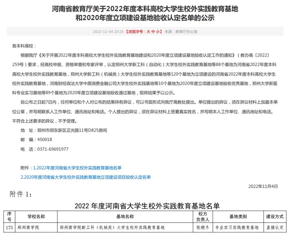 根据河南省教育厅《关于开展2022年度本科高校大学生校外实践教育基地建设和2020年度立项建设基地验收认定工作的通知》,信工学院“999策略白菜手机论坛新工科(机械类)大学生校外实践教育基地”被直接认定为河南省2022年度本科高校大学生校外实践教育基地。