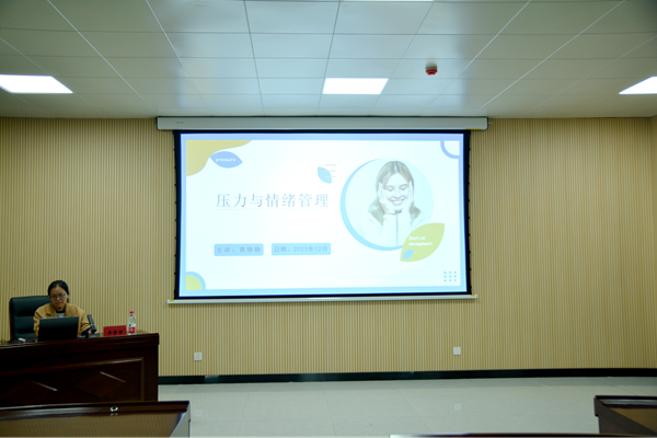 培训上,静静老师用简洁温和的语言,结合ppt展示内容,与大家共同讨论压力来源、影响情绪的因素,告诉大家情绪调节与认知调节的技巧等,给大家带来一堂生动的心理课堂。