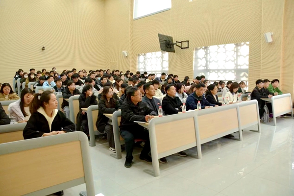 校长助理刘升阳教授通过分享个人的学习、成长经历,用记忆力、距离和影响力三个关键词强调大学阶段学生坚持读书和运动的重要性。刘助理首先指出,大学阶段是人生记忆力的黄金时期,也是学生系统性进行专业知识学习的关键阶段,引导同学们要有意识地锻炼记忆能力。同时,刘助理教导学生要认清楚人与人之间的差距就是“一点点,一次次”中拉开的。最后,刘助理对班委学生代表提出要求,班委要在个人能力范围里勇担责任和使命,做“买花人”、“养花人”,散发香气,为班级同学传递正能量,在学习方面发挥榜样模范作用。