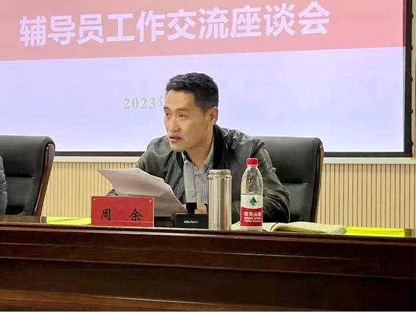 会议第二项,周余书记发言。首先,他从学生基本情况,近期开展“三大教育,两大工程”工作、辅导员未来规划、考研学生宿舍管理、下一阶段准备开展的工作、以学生为中心的工作理念等方面进行论述。接着,周书记结合带班辅导员分享的工作体会和现实困境给出了工作建议。第一、安全无小事,防范是关键。大家要进一步提高思想认识,认真梳理安全漏洞,高度重视安全工作问题,关注重点人群,抓好宿舍安全教育及隐患排查,为全院师生营造安全和谐的校园环境。第二、辅导员应该时刻保持学习和进步的态度,不断提高专业素质和业务能力水平,有意识积累个人业绩成果,进而更好地实现个人价值。第三、继续立足立德树人根本任务,紧密围绕辅导员九大工作职责,积极探索学生工作的新思路,使学生工作于实于细、走深走实,真正成为学生成长成才的人生导师和健康生活的知心朋友。