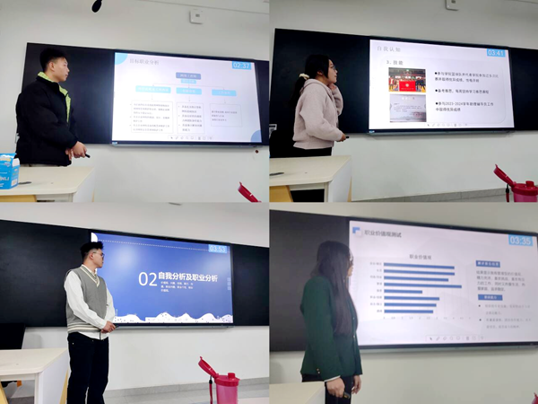 比赛开始,25位同学通过PPT进行逐一演示,深刻地阐述了自己对于未来职业规划的分析,他们从自身性格、专业、兴趣、以及专业测试等各方面分析自身的潜在优势,为往后的职业规划有更全面更科学的规划。比赛过程中,选手们落落大方,展示了对自身未来职业的畅想,此次比赛让同学们更好地了解职业规划同时也促使同学们深刻的体会到做好求职准备的重要性。