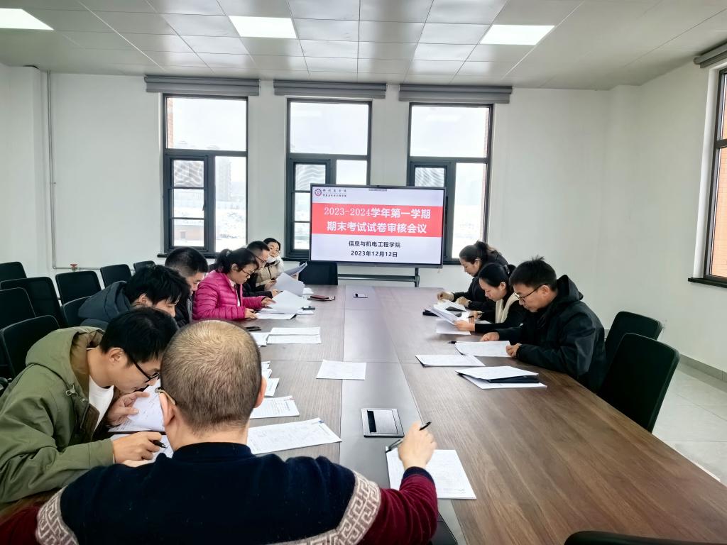 为进一步落实学校“严教”“严考”工作要求,更加规范考试命题工作,高质量完成本学期期末课程考核。12月12日下午,信工学院在三彩校区信工大楼会议室召开了2023-2024学年第一学期期末考试试卷审核会议,严把试题质量关。张晓冬院长、张伟华副院长、质量监控联络员任孝锋老师以及各教研室主任参加了本次会议。