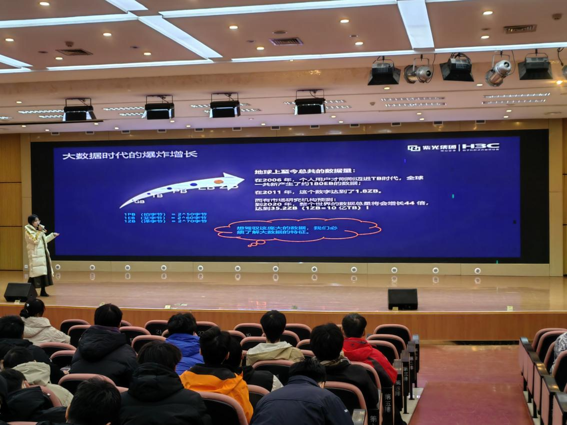 12月20日,22级大数据专业和网工专业的学生赴郑州大数据产业园新华三技术有限公司开展认识实习。上午新华三技术有限公司河南代表处商业技术部副总朱元昊经理受邀在紫荆东校区图书馆一楼国际报告厅分别为大数据专业和网工专业做了两场报告,报告的主题分别是《物联网络,路在何方》和《数字领航,智绘未来》。