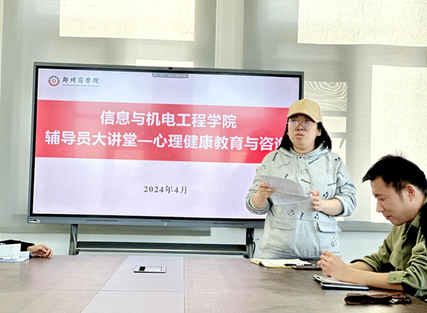 4月23日下午,我院辅导员大讲堂第五期在信工大楼会议室进行。信工学院团委书记张璐阳、信工学院全体辅导员老师参加,讲座由团委书记张璐阳主持。