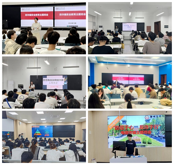 为进一步提高学生的安全防范意识,增强学生对诈骗手段的识别和应对能力,保护学生的财产安全,营造安全稳定的校园环境,我院于2024年10月12日至10月14日组织各班级召开防诈骗主题教育主题班会。