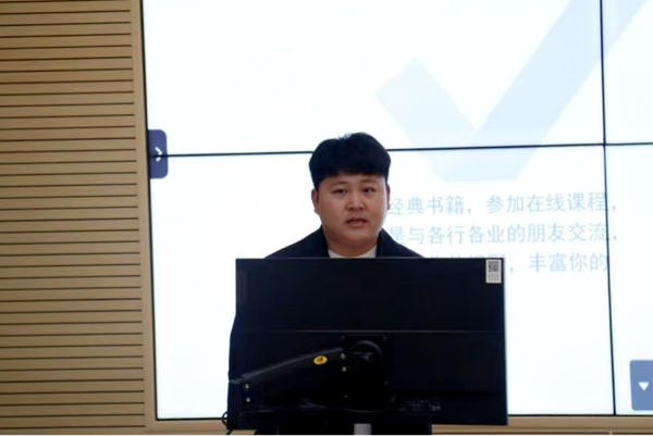 李兵延学长的到来引起了全场热烈的掌声。作为母校的优秀校友,他以真挚的情感和亲切的态度与学弟学妹们分享了自己从大学到考公一路走来的点滴经历。他谈到,大学生活的核心不仅仅是获取知识,更是锻炼自我管理和人际交往能力,培养批判性思维和创新能力。这些技能是未来职场中立足和进步的关键。李兵延学长特别强调“终身学习”的重要性,提醒同学们要不断保持对新知识的渴望和对未知领域的探索。