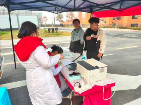 在活动现场,献血站的工作人员与热心的志愿者们精心策划并有序指挥,同学们井然有序地排列成队,依次顺利完成登记、体检、化验和献血等各个环节。整个流程不仅严谨细致,而且高效流畅,充分彰显了我院学子的纪律观念与团队合作精神。献血过程中,大家相互鼓励,勇敢地“挽袖前行”,共同见证着一份份满载爱心的血液被缓缓采集。