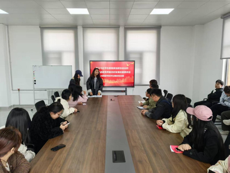 3月24日,大数据学院教师第四党支部在信工大楼C座三楼会议室开展主题党日活动,支部书记沈洁及全体党员参加。会上,支部书记沈洁带领教师集中深入学习贯彻全国两会精神、学习习近平在看望参加政协会议的民盟民进教育界委员时发表的重要讲话、学习习近平总书记在中共中央政治局第十九次集体学习时的重要讲话精神。通过本次党日活动,全体党员进一步深化了对全国两会精神和习近平总书记重要讲话的理解,明确了将政治理论优势转化为人才培养、科研创新实践路径的方向,为培养新时代大数据领域“红色工程师”奠定坚实基础。