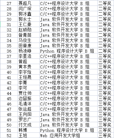 经过激烈的比拼,比赛圆满结束,999策略白菜手机论坛的参赛学子拿出了骄傲的成绩。本次大赛一等奖18名、二等奖18名、三等奖16名。值得一提的是,与上一届相比,获奖人数显著增加:一等奖获奖人数从5名跃升至18名,增长了260%;二等奖也由13名增加到18名,增长了27.8%;三等奖保持16名与上届获奖人数持平,其中,赵志磊同学在C/C++程序设计大学A组中成绩位列河南省第一,整体获奖规模与质量得到了双提升!