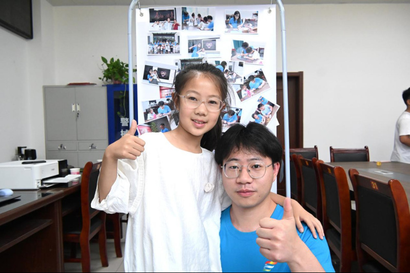 随后,“成果嘉年华”环节精彩上演。现场展示了两天以来的活动成果:从编程课堂上的趣味作品,到孩子们亲手拼接完成的创意拼图,每一张照片、每一个作品都记录着成长与探索的瞬间。孩子们分享着他们的所见所学,志愿者们也饱含深情地回顾了点滴收获和教学心得。