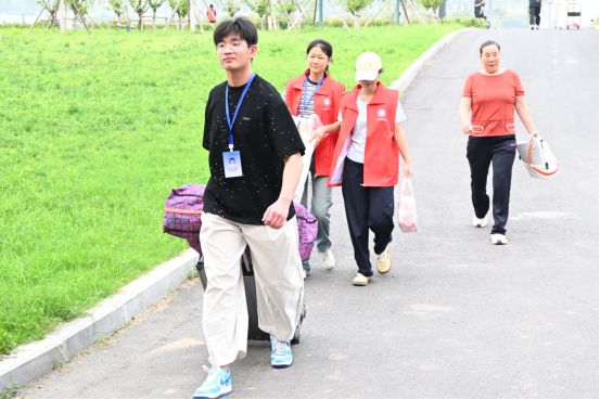 “一站式”贴心服务:从校门口到报到处,到宿舍楼,每一个关键路口,都有志愿者耐心指引的身影。他们主动接过新生手中沉重的行李,用微笑化解萌新们初来乍到的迷茫与不安。