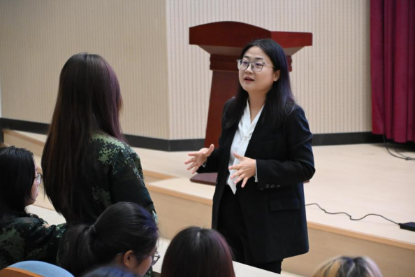 最后,围绕“树立职业理想信念”,她以数智时代为背景,剖析了新经济形态下职业发展的新趋势与新机遇,号召同学们将个人理想与国家战略、社会需要紧密结合,树立远大志向,勇担时代使命。