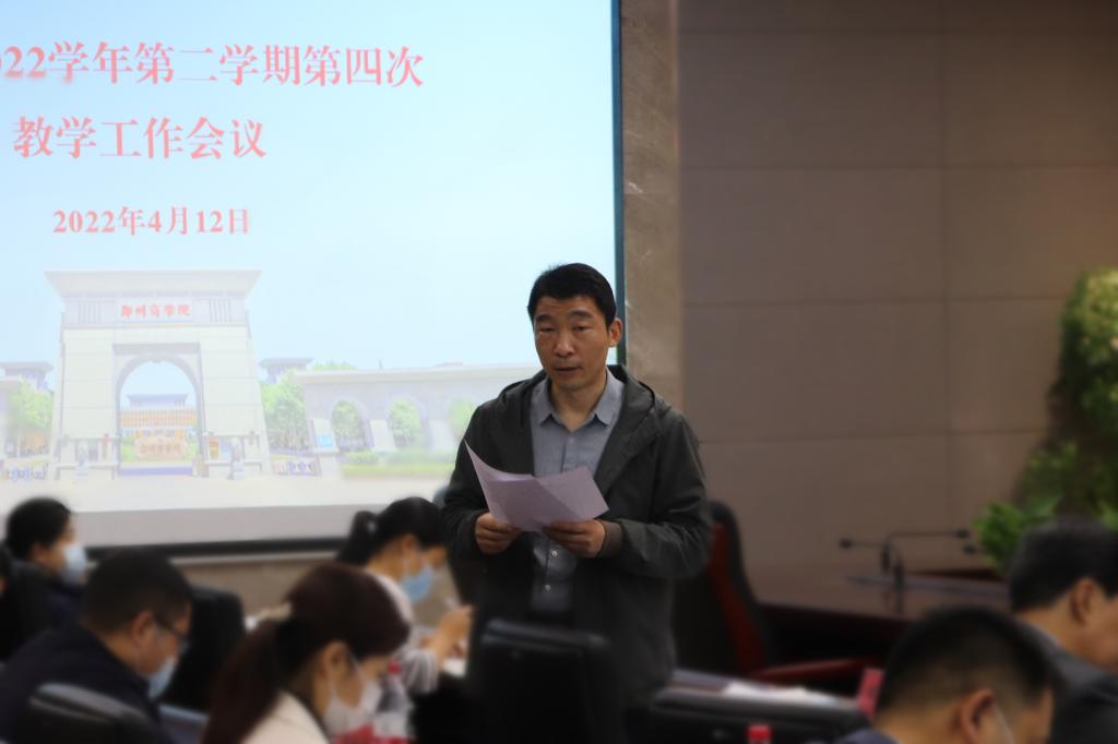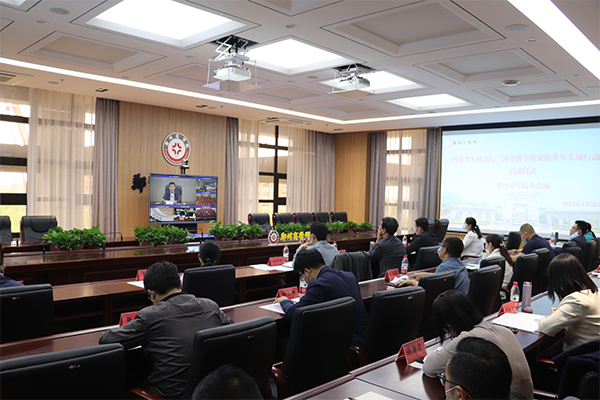 4月12日上午,河南省教育厅通过视频会议的形式举行全省本科高校“课堂教学质量提升年”专项行动启动仪式,省教育厅党组成员、副厅长、一级巡视员刁玉华出席仪式并讲话。我校在成功大会堂三楼会议室设分会场集中收看视频会议,师求恩副校长、教务长、质评中心主任、各院部院长、副院长、教务处副处长及各中心科室负责人参加了会议。