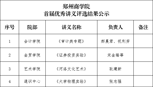 为深化教育教学改革,发挥好课堂教学的人才培养主渠道、主阵地、主战场作用,全面提升我校课堂教学改革和育人水平,教务处组织开展首届优秀讲义评选活动,在各院部推荐和教务处初审的基础上,选定7位教师的优秀讲义参与此次评选。本次评选以线上线下相结合的方式进行,结合教学指导委员会打分结果,现评选出4门课程的讲义为优秀讲义,现将名单予以公示(以下排名不分先后),公示期为6月4日至6月11日。