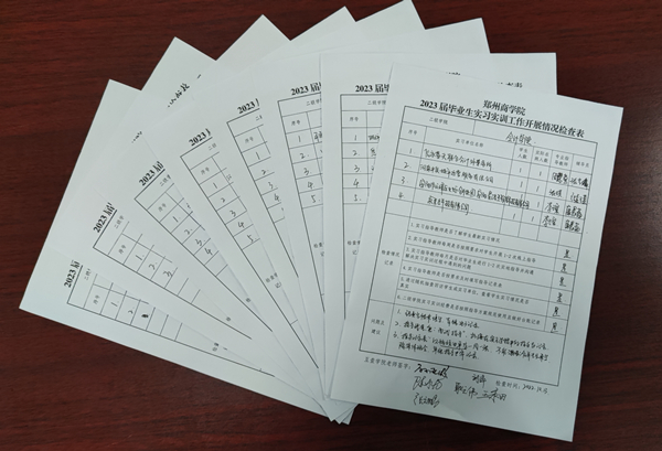 通过听(与专业指导教师、辅导员老师沟通了解学生当前安全状况、实习开展情况)、看(查看学生实习情况台账、指导教师指导台账、实习经费使用台账以及指导记录表填写情况)、查(根据学生实习台账,现场随机抽取并进行电话回访,共计电话联系实习单位38家,学生200余名)了解各学院毕业生实习实训工作开展情况。