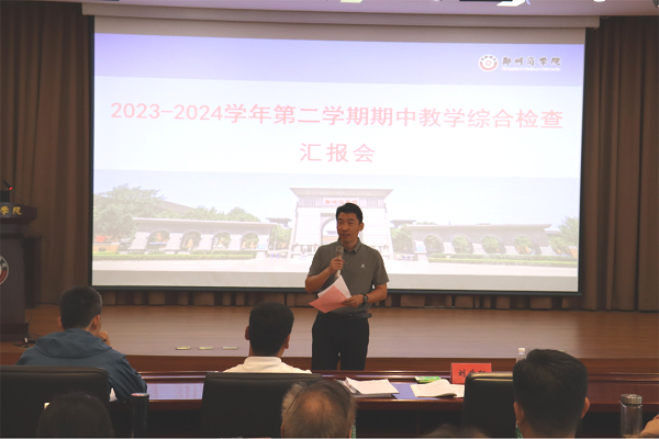 为凝练教学成效,稳步提升教学质量,5月23日下午,我校2023-2024学年第二学期期中教学综合检查汇报会在图书馆五楼学术报告厅顺利召开。校长助理、各二级学院院长(主任)、部分学院书记、副院长、教务处课务科科长、教学秘书、各学院教师代表及教务处工作人员参会。