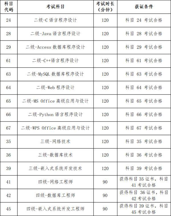 1.自2019年3月考试起,二级语言类及数据库类科目(即除MS Office高级应用外的其他二级科目)调整获证条件为:总分达到60分且选择题得分达到50%及以上(即选择题得分要达到20分及以上)的考生方可取得合格证书。