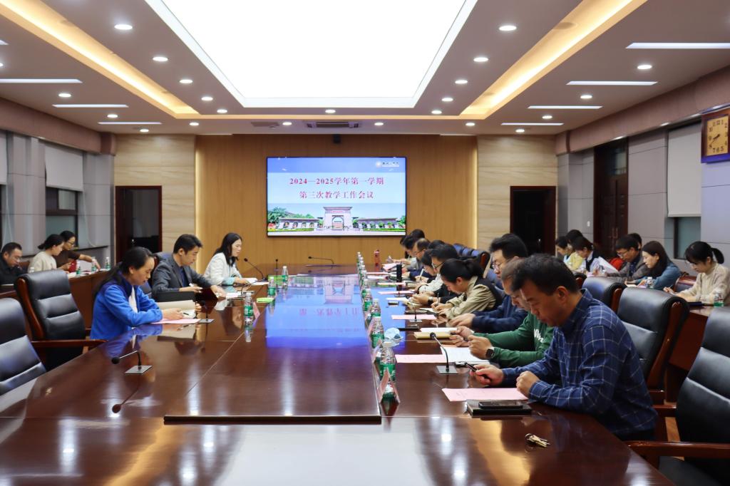 为落实全省教育系统安全工作会议精神,统筹部署下阶段教学重点工作,9月30日上午教务处在行政楼第一会议组织召开本学期第三次教学工作会议。副校长刘升阳、各二级学院院长(主任)、副院长、教务处副主管及各科长参加会议,会议由教务处副处长周培娟主持。