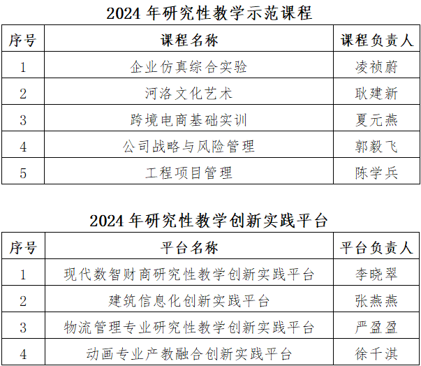 同时,依据《河南省教育厅关于加强普通高等学校研究性教学工作的指导意见》(豫教高〔2022〕128 号)要求,结合校级评审排名,拟推荐《企业仿真综合实验》课程与《现代数智财商研究性教学创新实践平台》申报省级培育项目。