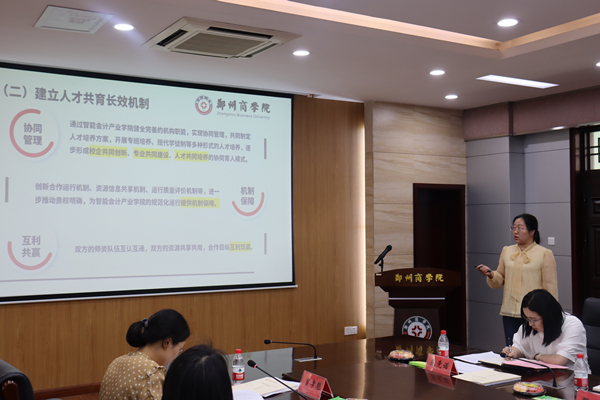 我校第二批拟立项培育校级产业学院牵头单位做立项汇报。“现代数智财商产业学院”“智能会计产业学院”“数字设计产业学院”校内牵头单位负责人工商学院杨松柏院长、会计学院祝利芳院长、艺术学院李宪广院长重点就产业学院建设背景、共建企业基本情况、建设基础、建设目标与内容、预期成果及经费保障等方面进行了立项汇报。