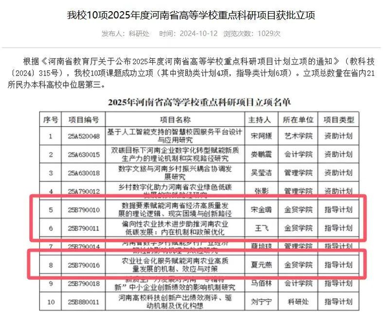 2025年度河南省高等学校重点科研项目获批立项