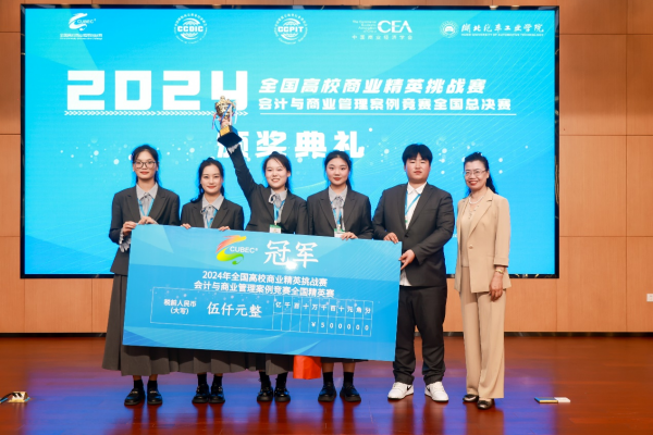 2024年6月30日,由中国国际贸易促进委员会商业行业委员会、中国国际商会商业行业商会、中国商业经济学会共同主办的2024年全国高校商业精英挑战赛会计与商业管理案例竞赛全国总决赛精英赛圆满落幕。我院由曹琦、段培鸽老师指导的“答案在明天”代表队(成员:石泉灵、王洒、田明月、徐庭欣、张森鹏)荣获全国总决赛冠军,为我校在本项竞赛上取得了历史性的突破!