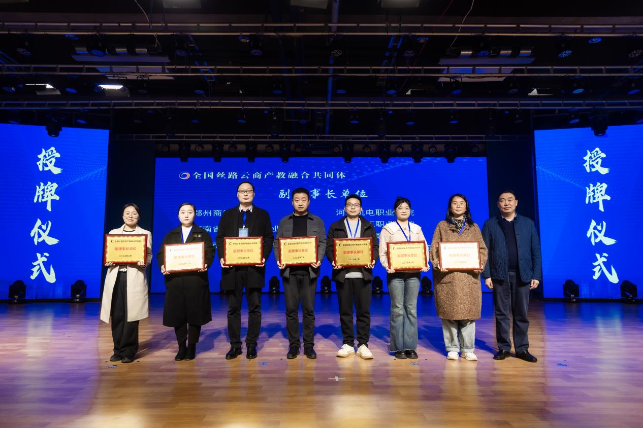 2月28日,由河南海一云商实业集团有限公司、河南财经政法大学以及河南工业贸易职业学院共同牵头主办的“全国丝路云商产教融合共同体”启动仪式在河南工业贸易职业学院龙湖校区隆重举行。来自全国40余所大中专院校、科研机构,100余家行业协会以及省内外企业的代表齐聚一堂,共同探讨产教融合的新模式、新路径。管理学院院长李晓翠、陈爱国教授、市场营销教研室主任张玲燕以及陈茜老师参加了启动仪式。在此次会议期间,我校被授予副理事长单位。