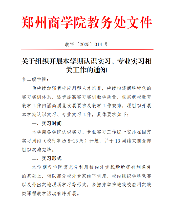 认识实习与专业实习是我校培养应用型人才培养的关键环节,是提升学生专业实践能力的重要途径。认识实习通过组织学生深入企业或生产一线进行参观、观摩与沉浸式体验,重在建立对专业领域、职业生态及岗位需求的全景化认知;专业实习则让学生在实际岗位中承担具体任务,运用知识解决真实问题,着力锻造实践能力与职业素养,实现从课堂到职场的"最后一公里"能力跃迁。为进一步强化我校应用型人才培养,充分发挥实习实训在实践教学中的重要作用,根据我校教学工作内涵发展要求及工作安排,教务处于本学期8-14周组织各学院圆满完成认识实习、专业实习工作。
