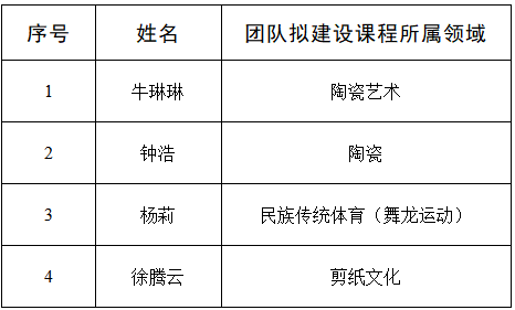 为响应教育部相关要求,在各单位申报推荐的基础上,我校拟推荐 《陶瓷艺术》等4门课程参与中华文化优秀数字化精品课程评选。现予以公示,公示期为 2025年8月15日—2025年8月21日。如对公示情况有异议,请在公示期内与教务处联系。