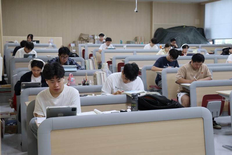 自习室内,同学们或伏案研读专业书籍,或对着笔记本梳理假期所学,笔尖划过纸张的沙沙声与翻书声交织,勾勒出宁静好学的动人场景。