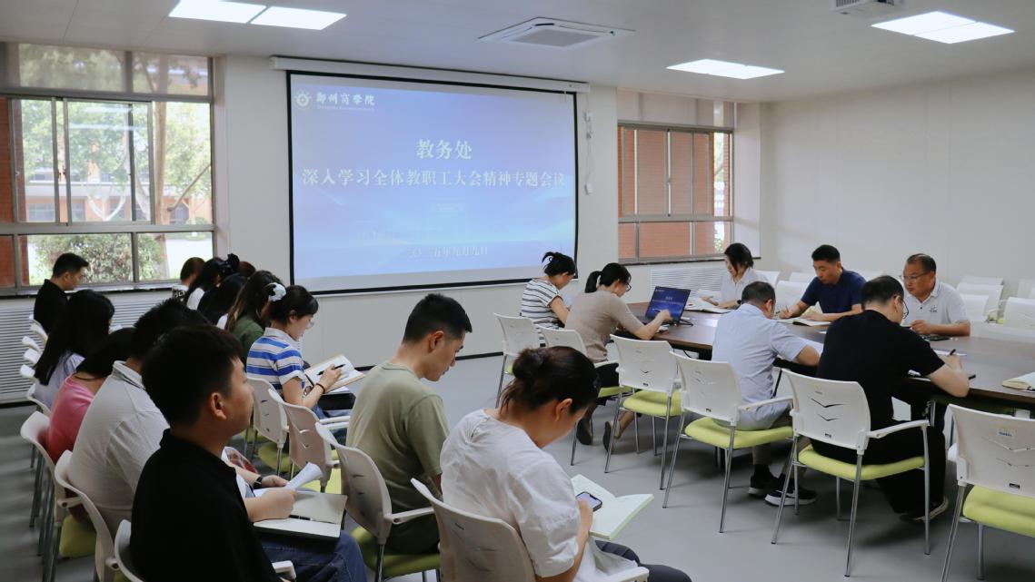 为深入贯彻落实全体教职工大会精神,统筹谋划教学重点工作,全面优化教学部署与实施,9月9日下午,教务处在四号楼一楼会议室召开专题学习会议。副校长刘升阳、教务处全体同仁参会学习,周培娟副处长主持会议。